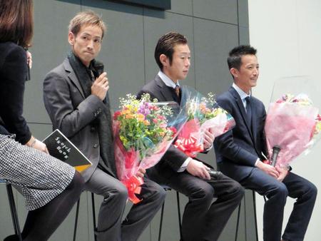 一般戦が開催されているまるがめボート場内のイベントステージで「SG・グランプリ&グランプリシリーズ」(20~25日、住之江)に出場する香川支部レーサーの壮行会が行われた。出場する4人の中から重成一人(38)=80期・A1、村越篤(38)=80期・A1、森高一真(38)=85期・A1=が登壇(三嶌誠司は都合により不参加)。大舞台に臨む意気込みを、地元ファンの前で話した。