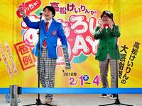 高松競輪でお笑いステージ中のにしね・ザ・タイガー(左)と華井二等兵