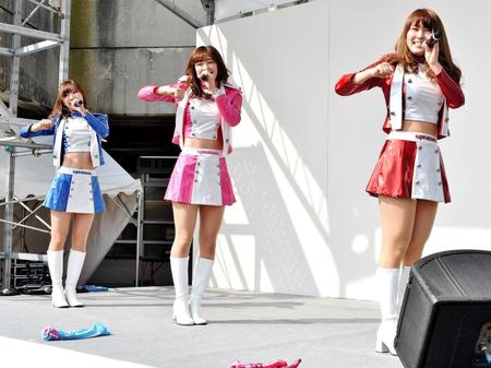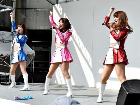 G3開催中の奈良競輪に24日、競輪場で会えるアイドルとして活動中の「スピーチーズ」が来場。2R発売中に場内の特設ステージでライブを行った。