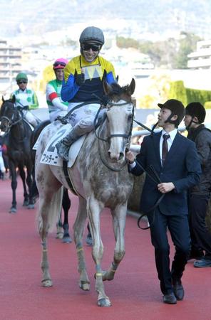 ブチ模様の白毛馬ブッチーニがデビュー戦快勝