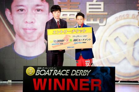 メモリアル、ダービーとSG連続優勝で賞金ランク1位へ浮上。「地元桐生のチャレンジカップのドリーム1号艇が目標だったので良かった。ダービーは選手の夢の一つ。その一つをかなえることができてうれしい」と胸を張った。