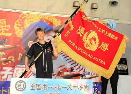 3コースで迎えた優勝戦。峰が投じたコンマ06の“剛速球”に対して、内枠のイン吉川はコンマ17、2コースの今垣はコンマ09とスリットで優位に立つと「まくり差しと決めて、S展示が終わってから100回くらいイメージトレーニングをして、その1回が来た感じ」と艇間を貫く豪快なターンで勝負。バックで先頭に躍り出ると「今のターンは120点。いい波に乗れて、何か楽しんでました」と悠々と“ダイヤモンド”を周回して勝利の余韻に酔った。表彰台では深紅の大優勝旗を手に「野球のセンスはからっきしないけど、それでも全国制覇ができたことを伝えたい」と最高の笑顔をファンに届けた。