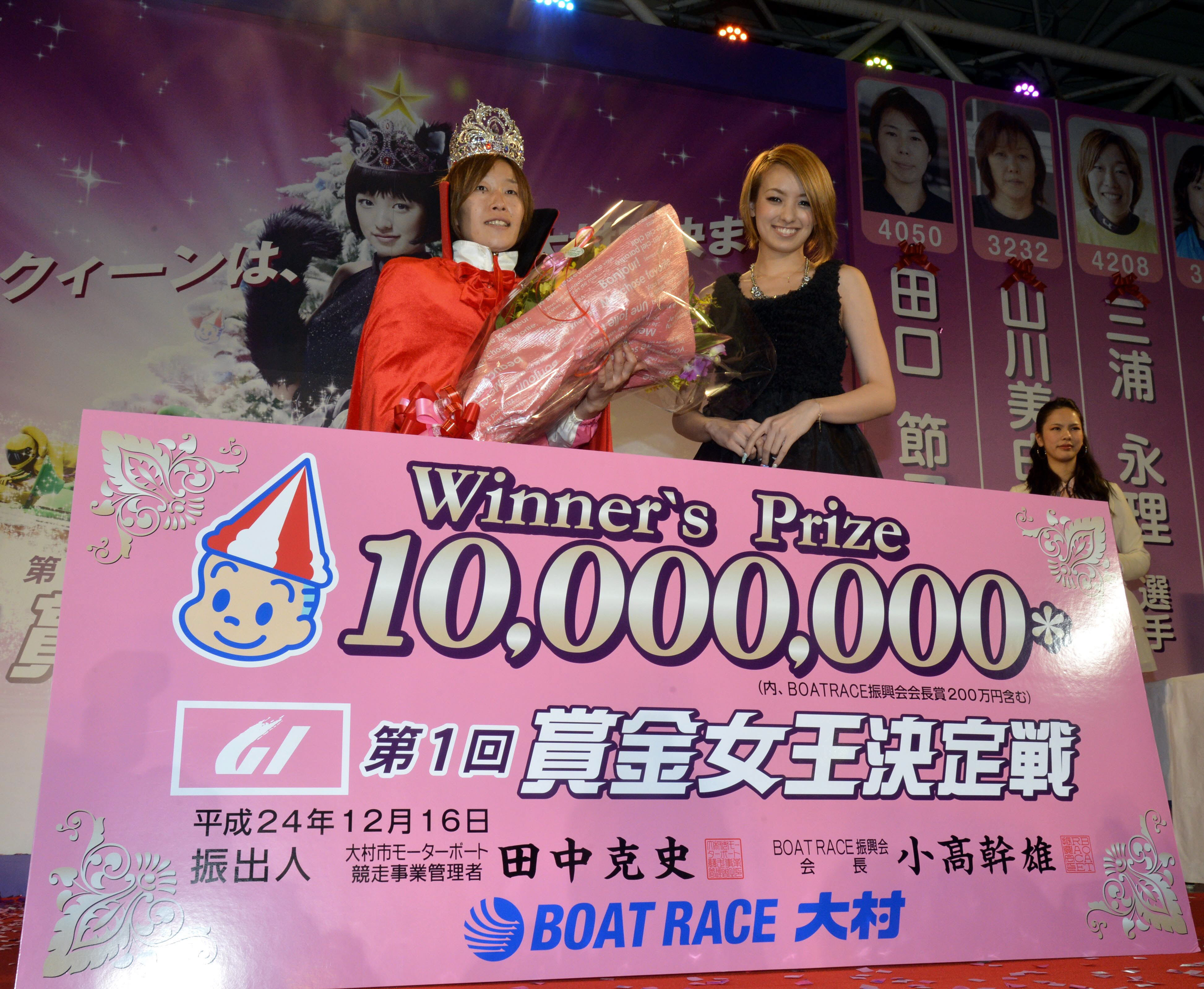初代賞金女王の座に輝いたのは今年女子最多勝を独走する三浦永理(29)=静岡・91期・A1=だった。3コースの三浦がトップスタートから切れ味鋭いまくり差しを決めて優勝。G1初制覇を記念すべき第1回大会で決めた。人気を背負った1号艇の田口節子(31)=岡山・85期・A1=は2着に終わり、3度目のG1制覇は成らなかった。また、11Rの賞金女王シリーズ戦は池田浩美(36)=静岡・81期・A2=がイン逃げで制した。