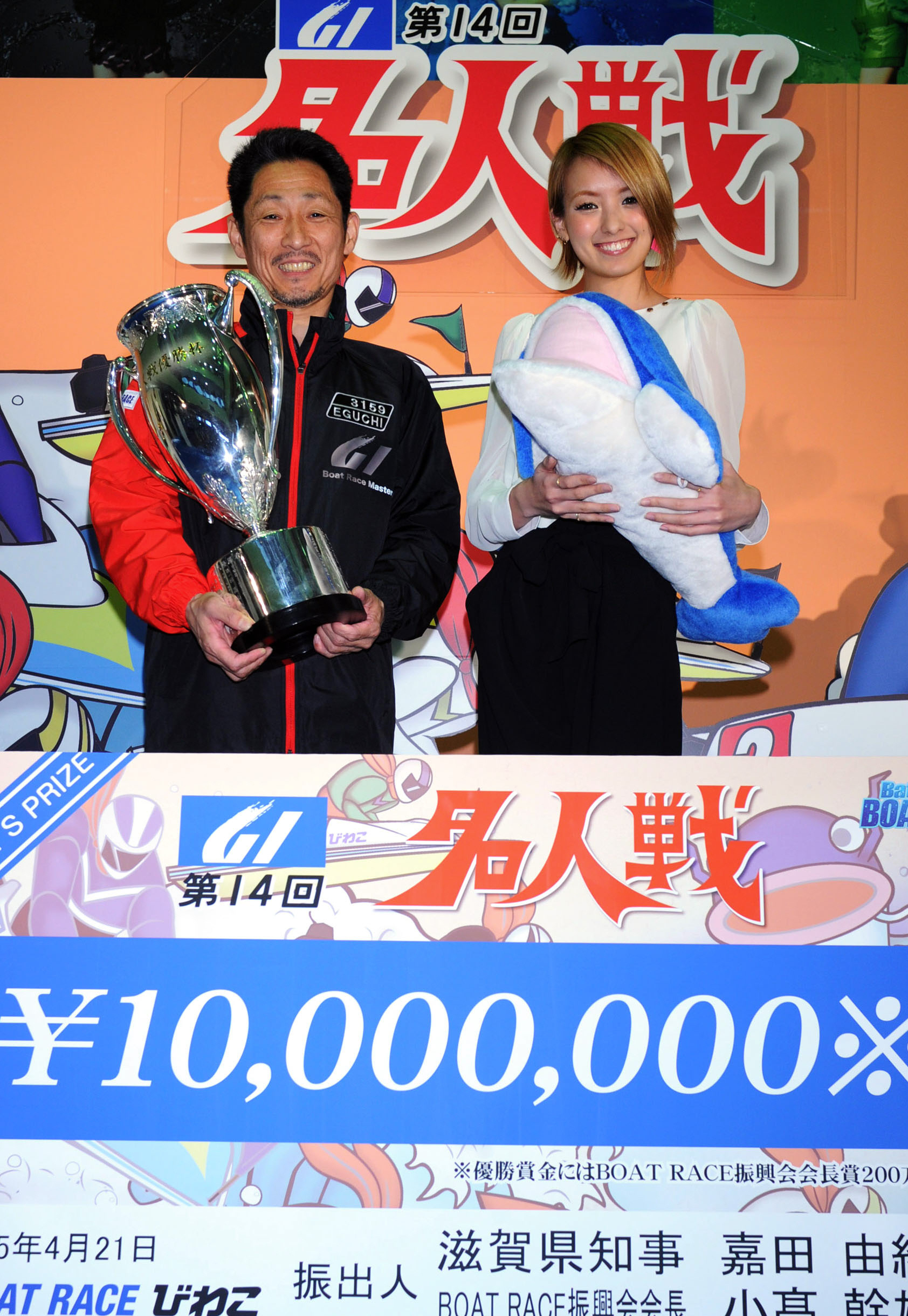 1号艇の江口晃生(48)=群馬・A1=がインから1Mを制圧。そのまま逃げ切って、名人戦デビューを優勝で飾った。09年に早大大学院に通い、修士となったインテリレーサー。「誰にも負けない」と胸を張るペラ調整力を見せつけ、“名人”の称号も勝ち取った。2着には日高逸子が入り、3着は落合敬一。今村豊は1M攻めたが及ばず、5着に敗れた。