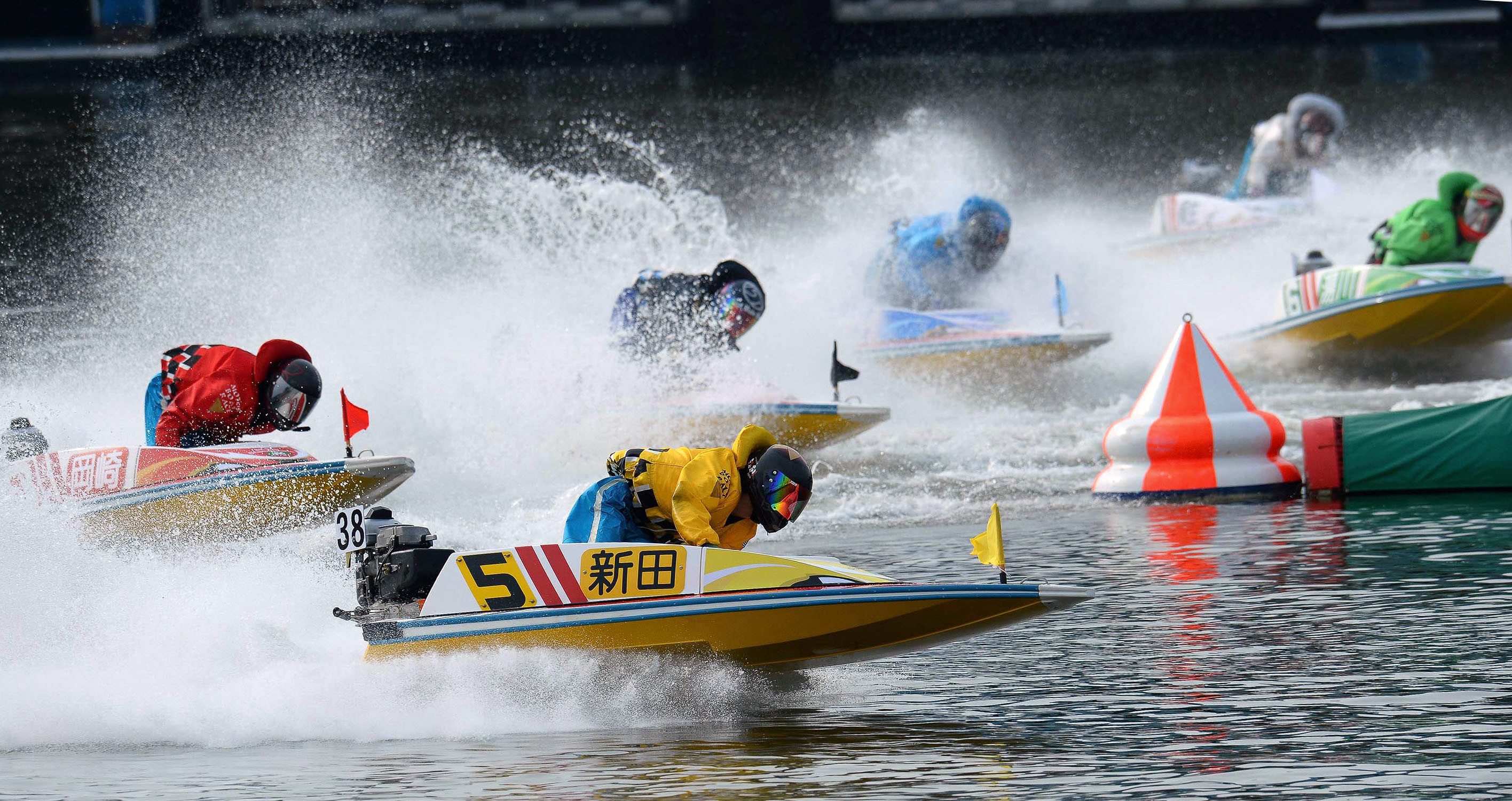 S展示で湯川が動き、新田が抵抗したものの引いて大外へ。162・345の並びだったが、本番は湯川だけでなく服部と新田もスロー水域に潜り込み、峰と岡崎は抵抗することなく外へ。1456・23でスリットに突入。トップSは新田だったが、2コースの服部が先まくり敢行。インで立ち遅れた桐生が激しく抵抗。両者が流れて3コースの新田が切り込み、1M過ぎに他艇を突き放して1着。2着争いは3周1Mまでもつれ、服部と岡崎が競り合うところを、4番手にいた峰が差して決着。3着は服部。戦い終わって