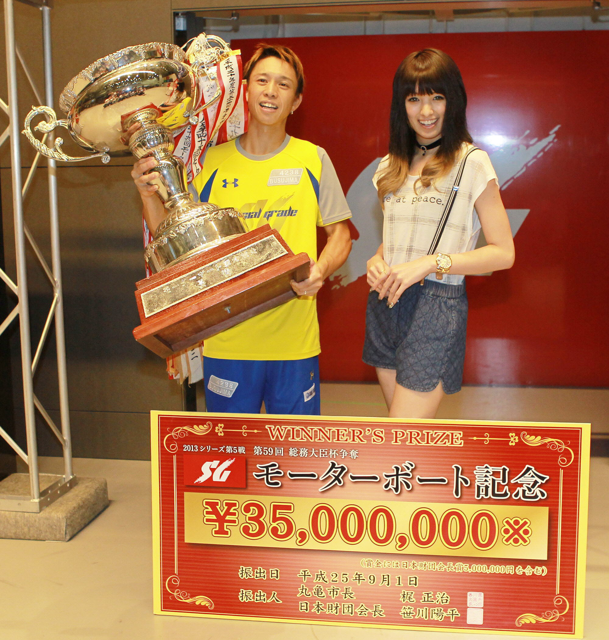 まさかのF発生となった優勝戦。毒島自身もコンマ02とギリギリの踏み込みで「Sは行くつもりだったけど、もしかしたら…」と、1Mを先頭でターンしてからも動揺していた。しかし、何とか踏みとどまって優勝。ゴールでは深々と頭を下げたあとに、力をこめてガッツポーズ。「本当にうれしい気持ちで、自然と出ました」と、満面の笑みで振り返った。若松オーシャンCに続いて、SG2節連続で優出。「30歳になるまでに1度くらい優勝戦に乗れればいいかな」と考えていただけに、これ自体が毒島にとっては予想外。しかも優勝となり「本当に幸せ」と笑いが止まらない。