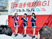 名古屋競輪でライブを行ったスピーチーズ(左から)木村菜摘、長田真友子、北川果歩