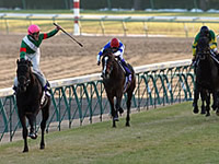 ザッツザプレンティとアクティブバイオが、競り合って飛ばす展開。しかし「速いのは前の2頭だけ。他の馬はノーマルなペースだった」とペリエは冷静に6番手をキープ。終始、武豊リンカーンを見ながらレースを進めていく。3角過ぎから先行勢が続々と脱落、あとはゴーサインを出すだけだ。「手応えは抜群で、思い通りに伸びてくれた。“イージートラベル”だったよ」と余裕で振り返る圧勝だった。