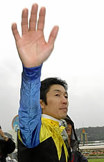 【本物のヒーロー誕生に豊も感謝】 壮行戦でも鮮やかに飛んだ―。圧巻のドラマは、後方2番手の“指定席”から始まった。ディープインパクトは3コーナー入り口から始動。坂の下りで勢いをつけ、大歓声のなかで直線へ向くと、ユタカはムチを一定のリズムで何度も振るった。ゴール板の手前、最後の1発を打ち込むかと思われた右腕は、そのままグッと握られガッツポーズに変わった。後続に4馬身差をつけた5度目の戴冠。史上7頭目、そして最速での賞金獲得額10億円ホースとなった瞬間だった。