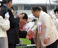 【江夏氏表彰式でプレゼンター 】 本紙・評論家の江夏豊氏が、“大沢親分”こと元日本ハム監督の大沢啓二氏とともに表彰式でプレゼンターを務めた。「今日は午後のレースをずっと買ったんだけど、全部ダメだったよ」と馬券の結果はかんばしくなかった様子。それでも「一生懸命走って馬はいじらしいね。また遊びに来たい」と競馬場での一日を楽しんだようだった。