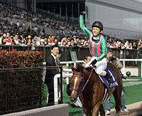 【好騎乗松岡初G1、母の日に最高のプレゼント 】 ▽12番人気 母の日に最高のプレゼントを贈った。逃げ込みに入ったアサヒライジングを半馬身、捕らえてゴール。コイウタの鞍上で、松岡が大きく、大きく右腕を上げた。「1カ月前からたぶん勝つと思って招待した」。スタンドには母優子さんと父正治さんの姿があった。最高の孝行息子はその直感の通り、見事大観衆の前でヒーローになった。 「皐月賞(サンツェッペリンで2着)が悔しかったから、(ガッツポーズが)大きく出ちゃいましたね。でも半分、頭が真っ白になった」。レース後しばらくすると、そう言って喜びをかみしめた。レース内容は完ぺき。直線での進路について「外にスペースがなかったから、あえて内を選んだ」というが、前半に騎乗したレースでの感覚から「馬場のどのあたりを通ればいいかは見当がついていた」と最高のVロードを走り抜けた。 開業3年目の奥平師も「何人の方と抱擁したか分からないくらいうれしかった」と素直に喜びを語った。GIの口取りは、義父の奥平真治元調教師が手がけた86年オークスのメジロラモーヌ以来で、当時はまだ中学1年生だった。「関東の馬が関東のジョッキーで勝てたことが最高にうれしい。僕が調教師になる前から見ていた馬もいて、本当にすごいメンバーの中で勝ってくれた」と満面の笑みで愛馬を称えた。 ▽海外挑戦 この日の勝利で、夢が大きく膨らんだ。コイウタの名付け親でもある社台ファーム代表の吉田照哉氏は、7月7日に米・ハリウッドパーク競馬場で行われるキャシュコールマイル(GII・芝約1600メートル)への参戦を表明。これを受けた奥平師も「この馬が僕らに(海外遠征の)経験をさせてくれる予感をもっている」と前向きに語った。GIの勲章を手に世界の舞台へ―。コイウタの挑戦が、新たなページを開こうとしている