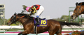 黒みがかった芦毛の馬体が、堂々と先頭に躍り出た。藤岡康こん身の右ステッキに応え、ジョーカプチーノが力走…