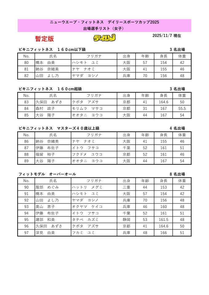 【出場選手・暫定版発表】ニューウェーブ・フィットネス デイリースポーツカップ2025