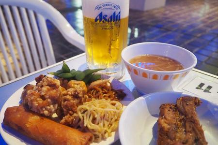 吹田工場から直送されるアサヒスーパードライなど生ビールをはじめ、ハイボール、焼酎など約30種類のドリンクがスタンバイ。フードは唐揚げに焼きそば、肉団子、ウインナー、フライドポテト、焼鳥・・・といった、ビールにぴったりのガッツリメニュー約40種類がずらりと並ぶ。「昔から変わらず、このシンプルなスタイルです。場所柄、会社帰りのサラリーマンや学生が多いので、枝豆や唐揚げなど、ビアガーデン定番のメニューが人気。これからも続けていきたいと思っています」とは広報担当者。