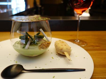 なかでも、ぜひいただいて欲しいのがイートイン限定のデザート。クリーム、サブレ、メレンゲ、ショコラなど10種以上のパーツを使用した、目の前で仕上げてくれる至福のひと皿。ちょっとしたサプライズも加えられ、そのライブ感あふれるビジュアルと芳醇な香りに、きっと感激するはずです。