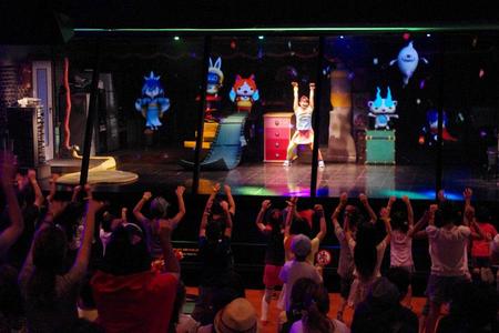 今回初登場の『ようかい体操・ザ・リアル』は、知らない間に妖怪に取り憑かれた劇場を取り戻すため、ようかい体操を踊って妖怪と仲良くなるアトラクション。ここでもステージの上にジバニャンやウィスパーたちがいるかのような演出で、「ようかい体操第一」を彼らと一緒に踊る。