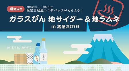 東北から沖縄まで、ご当地のガラス瓶入りサイダー&ラムネが勢揃いするイベント『夏休み!! ガラスびん×地サイダー&地ラムネ in 銭湯 2016』が関西にで初上陸。7月16日から関西エリアの22銭湯でスタートする。