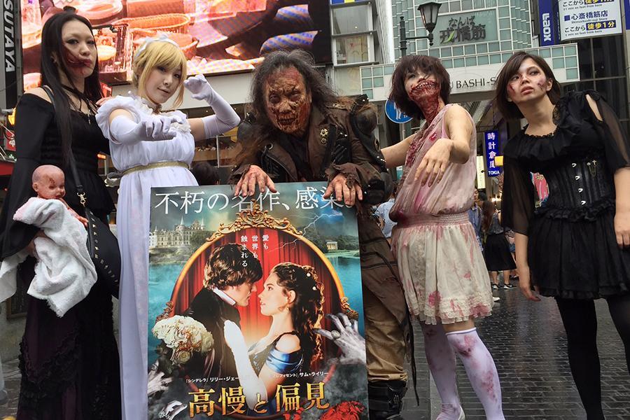 ミナミを闊歩、ゾンビのコスプレイヤー