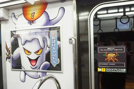 11月上旬からは、おなじみの楽曲が駅発着の前後に流れる車内放送もスタート。始発駅の「中之島」「淀屋橋」「出町柳」発車時には、ゲームのタイトル画面で流れる『序曲』のメロディー、乗換をする人が多い「京橋」到着時には、寝過ごさないようにと『宿屋』で目覚めるときの効果音など、駅や方面によって異なるBGMが流れる。電車は特急でほぼ毎日運行し、「出町柳」と「中之島」「淀屋橋」を結ぶ区間を走る。期間は2017年1月9日まで。