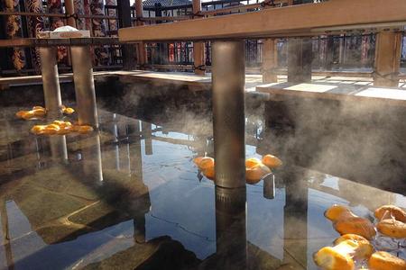一年のうちでもっとも昼の時間が短くなる冬至の12月21日、京福電鉄の嵐電・嵐山駅ホーム内にある嵐山温泉「駅の足湯」にゆず湯が登場する。