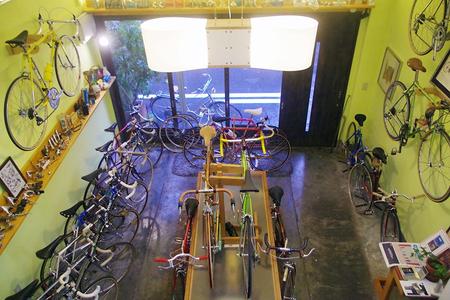 イタリア語で「古い自転車」という意味「ビチクラシカ」は、2009年にオープン。以前は木造の古い古民家だったが、今回のリニューアルにより、鉄筋コンクリートの3階建てのビルに店を構えることとなった。ライトグリーンを基調にした店内には、70年代を中心としたヴィンテージロードバイクが所狭しと並んでいる。