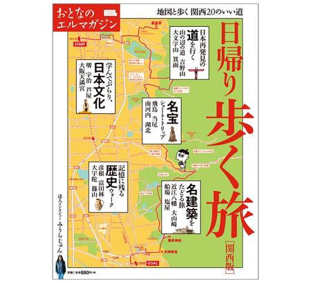 そのシリーズ第一弾となるのは、『日帰り 歩く旅 関西版』。関西圏内の「死ぬまでに一度は行きたい」名勝・古刹・絶景をまとめた1冊。巻頭にはみうらじゅんのほか、気鋭の建築家やアーティストらが案内人として登場。立ち寄りや食事処のほか、ネットでは調べがたい道中の細かな経路やマップも掲載している。今後、「旅とおでかけ」をテーマに、年4冊の刊行が予定されている。関西エリアの書店・コンビニで3月17日発売(950円)。