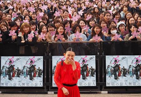 京都「ローム・スクエア」で30日におこなわれた映画『無限の住人』のプレミアイベントに、主人公・万次を演じた木村拓哉とヒロイン役の杉咲花が登場。訪れたファン2000人を前にトークショーをおこなった。