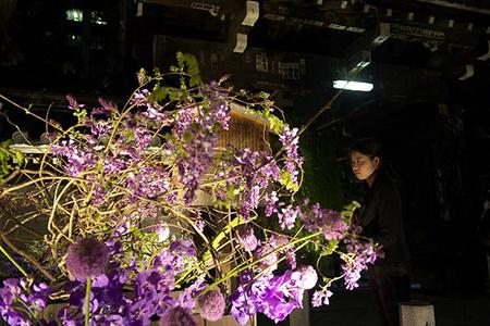 華道池坊の大作を、京都・六角堂でライトアップ展示