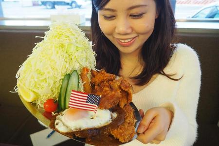 注文したのは「大人のお子様ランチCセット」1400円。ウェイトレスのお姉さんが片手で運べないくらい、プレート自体がとにかくデカい。野球ボールサイズのからあげが3つに、それに負けない大きさのハンバーグ、トンカツ、海老フライがてんこ盛り。さらに、おかずの横に鎮座するキャベツは二郎系ラーメンのトッピングかと思うぐらいズッシリ盛られている。別プレートのごはんも、完全にお子様じゃないサイズ。聞けば700g、お茶碗大盛りが200gだから3.5倍の量だ。「どれから食べよう・・・!」もう食いしん坊の私のテンションはUSJに来たときと同じ!