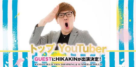 「京セラドーム大阪」(大阪市西区)でおこなわれる関西最大のファッションイベント『KANSAI COLLECTION 2018 SPRING & SUMMER』(3月21日)に、国内チャンネル総登録者数No.1の人気YouTuber・HIKAKIN(ヒカキン)が出演することが発表された。