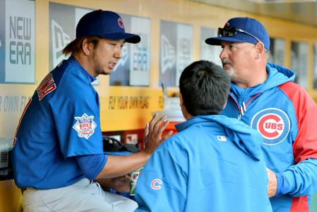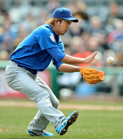 パイレーツ戦の8回に登板し、三者凡退に抑えたカブス・藤川=PNCパーク(共同)