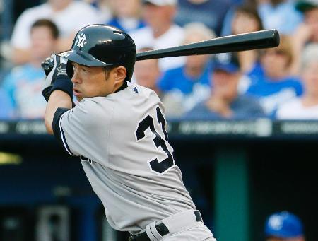 ヤンキース戦の3回、二盗を試みたロイヤルズ・青木。いったんはセーフだったが、ビデオ判定でアウトとなる=カンザスシティー(共同)
