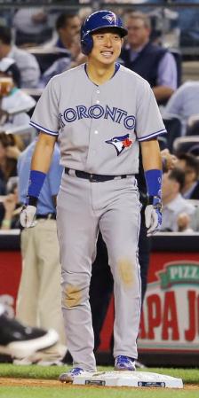 ヤンキース戦の7回、右前打を放つブルージェイズ・川崎=ニューヨーク(共同)