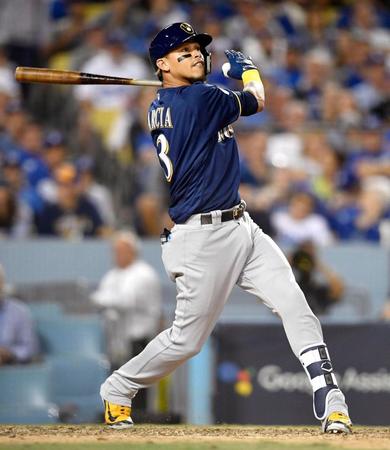 一方のブルワーズは一回1死一塁からブラウンの適時二塁打で先制。六回2死からショーが三塁打で出塁し、ビューラーの暴投で2点目。七回1死二塁の場面で8番アルシアの右越え本塁打で2点を加え、少ない得点機を確実にものにした。