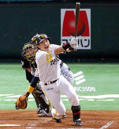 1-0とリードして迎えた第2打席、1死一塁。追い込まれながらも粘って迎えた8球目、阪神先発・岩田の甘く入った変化球をフルスイングすると、打球は大きな弧を描いて左翼席に吸い込まれた。