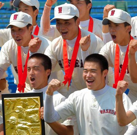 早実が八回に5点ビハインドを大逆転して5年ぶり29度目の優勝を飾った。スーパールーキー、清宮幸太郎内野手(1年)は、最多で5度の出場チャンスがある甲子園への1枚目の切符を獲得した。