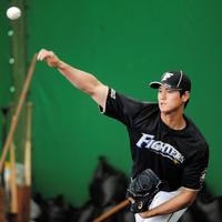 ブルペンで投げ込みを行った日本ハム・大谷翔平=名護(撮影・開出牧)