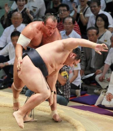 西前頭3枚目の大砂嵐(大嶽)が横綱鶴竜(井筒)をすくい投げで下し、初金星を挙げた。年6場所制となった1958年以降、初土俵から15場所目での初金星は、小錦の14場所に次いで2番目の速さ(幕下付け出しを除く)となった。
