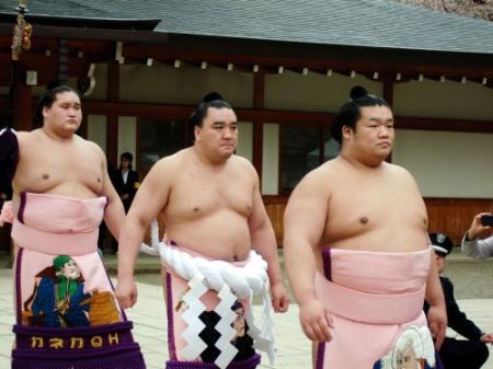 春巡業のこの日は東京都千代田区の靖国神社で奉納相撲が行われ、約9500人の観衆が詰めかけた。今年は戦後70年にあたり、日馬富士は横綱白鵬とともに10年ぶりに拝殿前で不知火型の土俵入りを披露した。