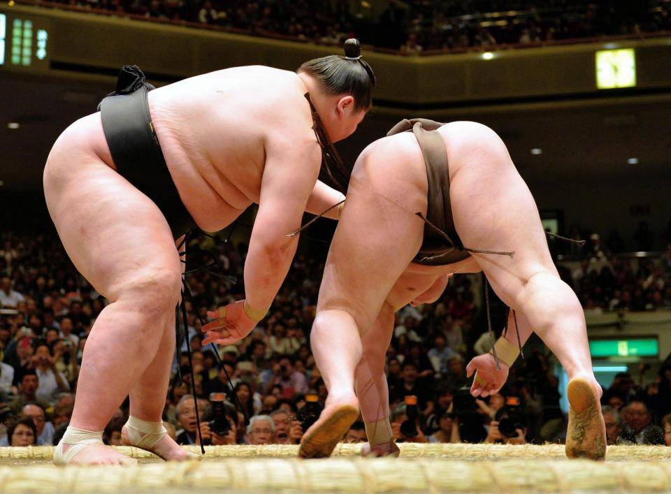 白鵬 逸ノ城に初黒星土俵中央に手をつく