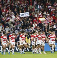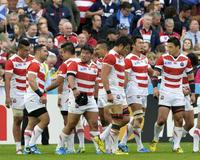スコットランドに完敗し、肩を落とす(右から)五郎丸、伊藤、サウら日本フィフティーン=グロスター(共同)