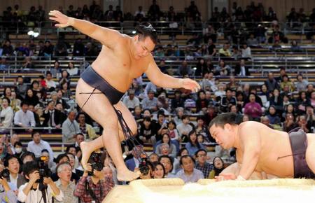 白鵬は碧山を上手投げで退けて5連勝。日馬富士は隠岐の海を下手投げで下し4勝目と、ほかの2横綱は順当勝ちした。