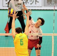 第1セット、スパイクを放つ清水邦広=東京体育館(撮影・棚橋慶太)