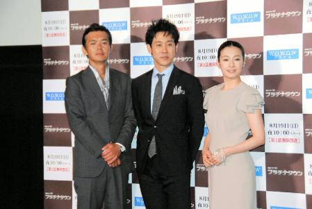俳優の大泉洋が17日、都内で、19日から放送開始するWOWOWの主演ドラマ「プラチナタウン」(全5話。日曜、後10・00)の完成披露試写会に登場した。
