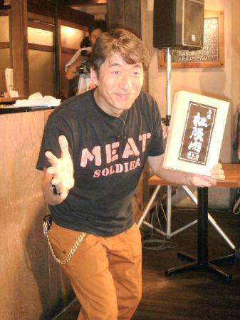 ダチョウ倶楽部の寺門ジモンが6日、東京・五反田のステーキ・ハンバーグ専門店、ミート矢澤で携帯専用放送局・BeeTV「寺門ジモンの絶対に食べて欲しいガツ飯」配信開始記念イベントを行った。肉料理を中心に厳選の名店を紹介している寺門は、「肉の聖地」と命名する‐矢澤で30人に超高級ステーキを振る舞った。