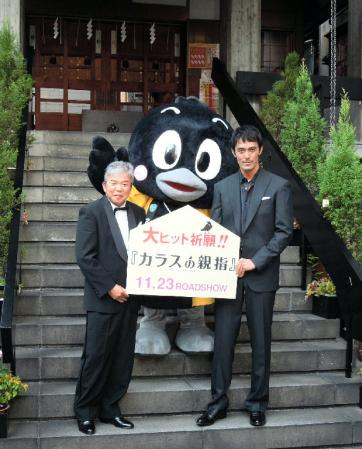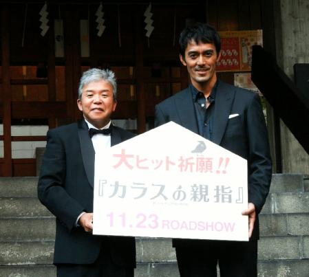 直筆の絵馬を奉納した阿部寛(右)と村上ショージ。阿部は村上の中途半端なボケも優しくフォロー