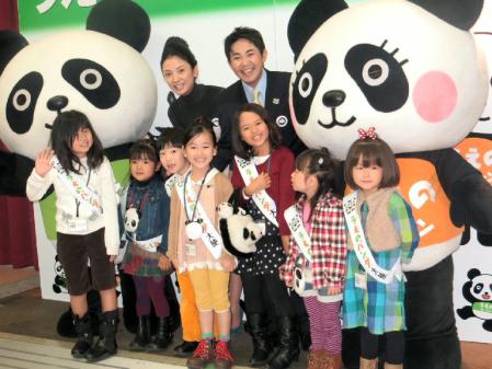 落語家・林家三平(41)が28日、東京・上野動物園で行われた「うえのパンダ大使」の任命式に妻で女優の国分佐智子(35)とゲストで登場。パンダに負けじと子作りを誓った。