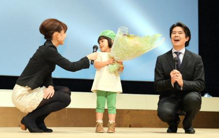サントリー「GREEN DA・KA・RA」のCMに出演し、その笑顔が「かわいすぎる」と注目を集めている子役・しずくちゃんが、国内最大のCMコンクール「第52回ACC CM FESTIVAL」でタレント賞を受賞し、1日、都内で行われた贈賞式に出席した。