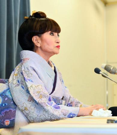 涙をこらえて森光子さんの思い出を語る黒柳徹子=TMC