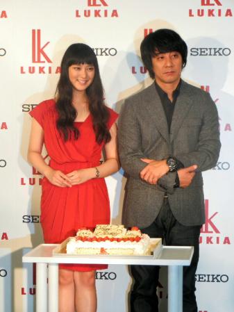 女優・武井咲(18)が21日、都内で、イメージキャラクターを務める「セイコー ルキア」の新CM発表会に、CM曲を担当したシンガー・ソングライターの山崎まさよし(40)とともに登場した。